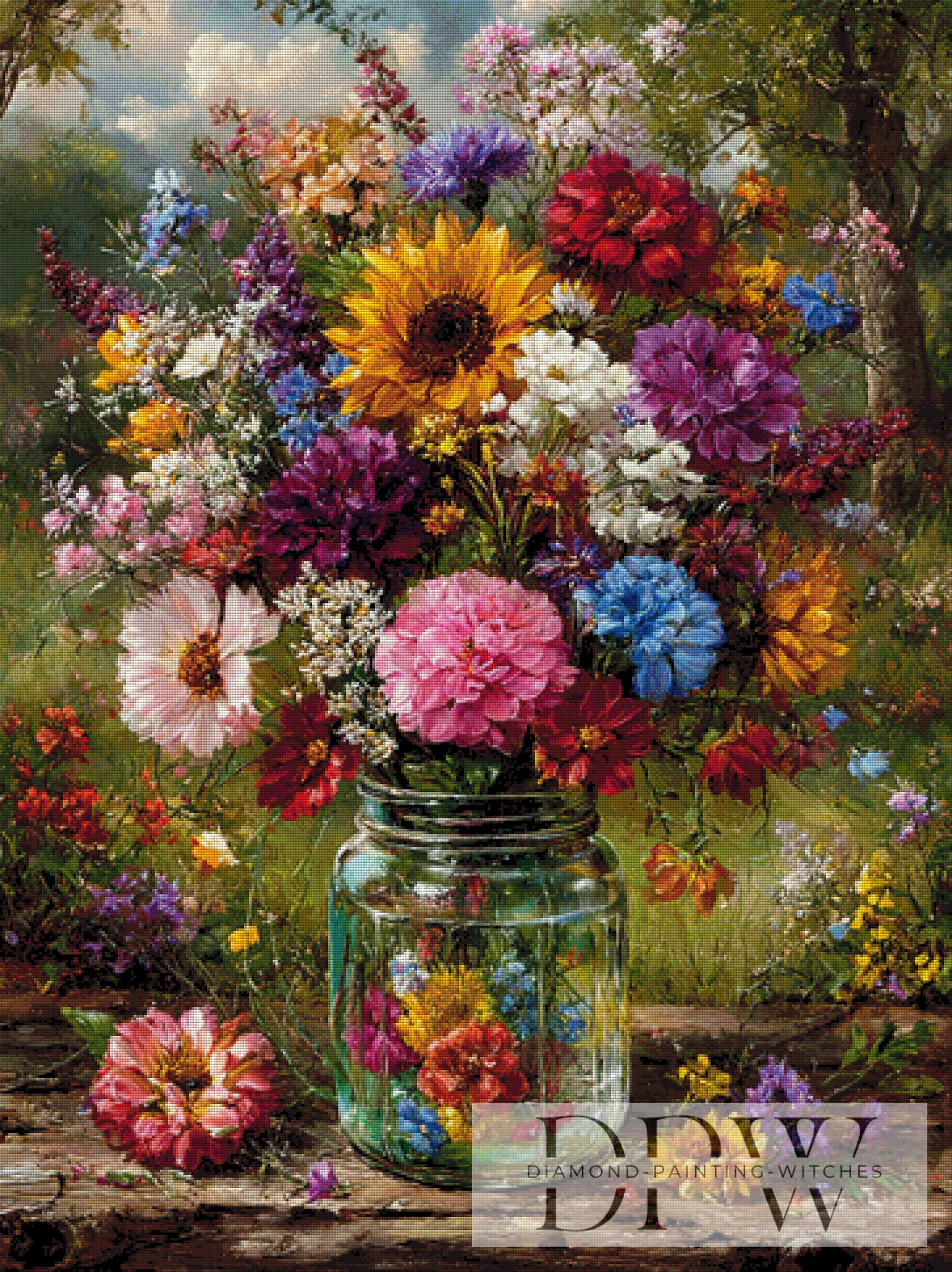Wunderschöner Blumengruß by Moonlight 90x120cm mit 400 Farben DPW-4512