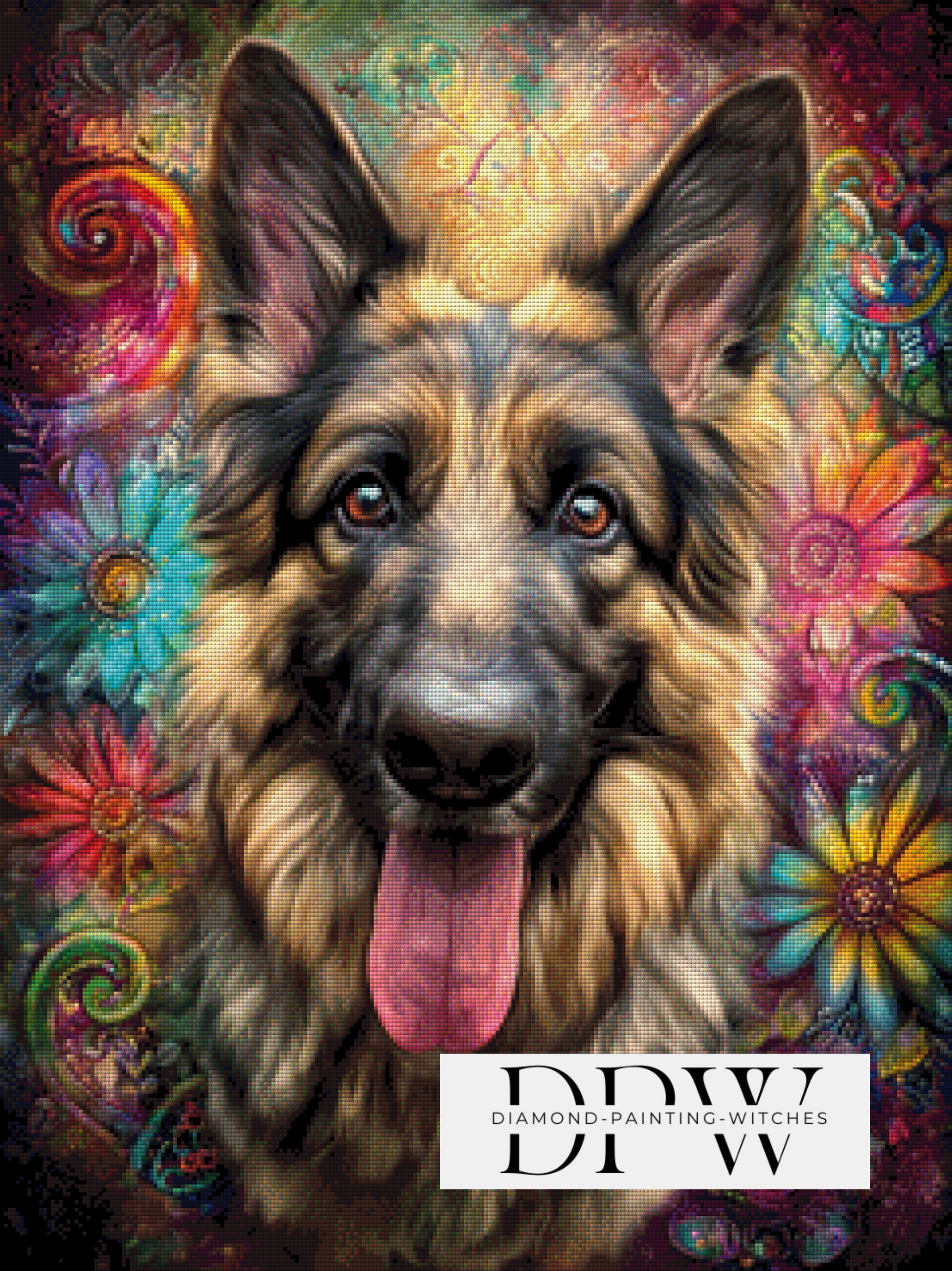 Das Motiv wird auf einer Seidenleinwand gefertigt, mit gestepptem Rand, als Kleber wird Flüssigkleber verwendet, abgedeckt durch Klarsichtfolie. Ihr bekommt die Steinchen in eckiger (Harz) oder in runder Ausführung (Acryl).
